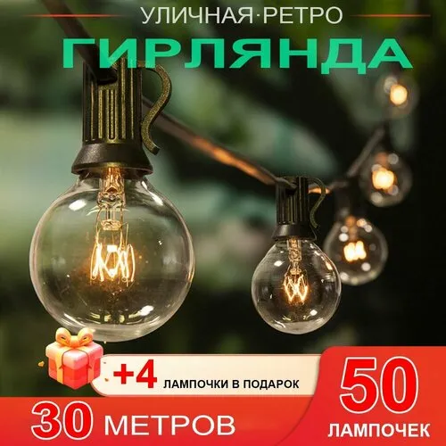 Уличная Ретро Накаливания 50 ламп, 30 м, питание От сети 220В, 1 шт