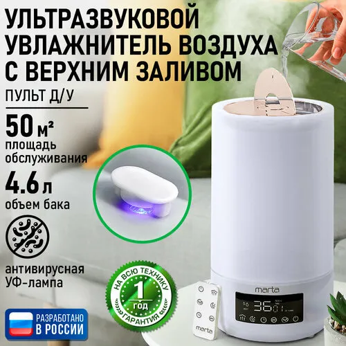 "Увлажнитель воздуха ультразвуковой MARTA MT-2696 верхний залив антивирусная УФ - лампа белый/медный хром" относится к дешёвому сегменту . Цена, предложенная магазином Яндекс.Маркет , на 0% отличается от популярной цены (3480 руб.).