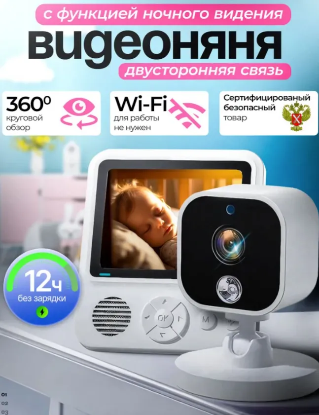 Видеоняня AM-900 - Это цифровая система, работающая на защищенной частоте 2.4 ГГц. Это означает, что вам не нужен Wi-Fi или интернет: сигнал идет напрямую от камеры к монитору, что исключает риск взлома извне и задержки видео. Модель позиционируется как бюджетный, но функциональный гаджет «все в одном», подходящий для небольших квартир и поездок.