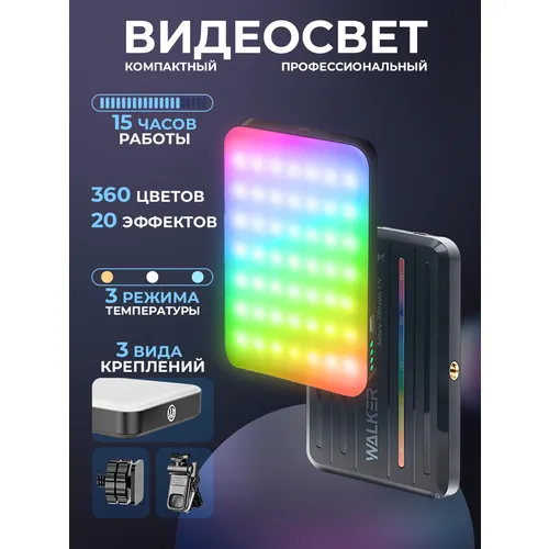 Видеосвет портативный, WALKER WLR-A5, RGB, свет для видеосъемки, фотосъемки, студийный свет для стрима, осветитель для телефона, кольцевой лампы