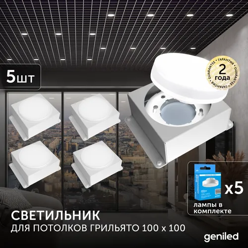 Встраиваемый светодиодный светильник для потолка грильято с лампой GX53 5 шт для ячейки 100х100 белый