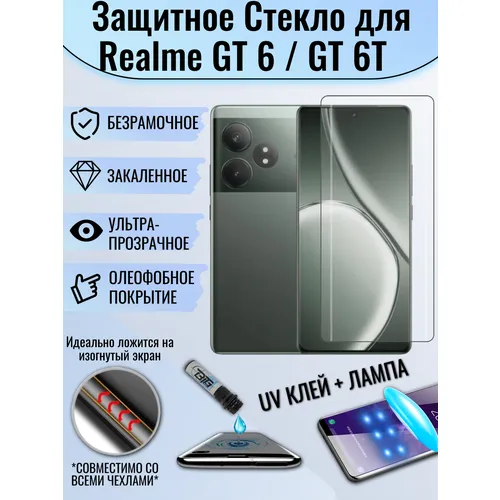 Защитное стекло для Realme GT 6 с UV УФ клеем и лампой