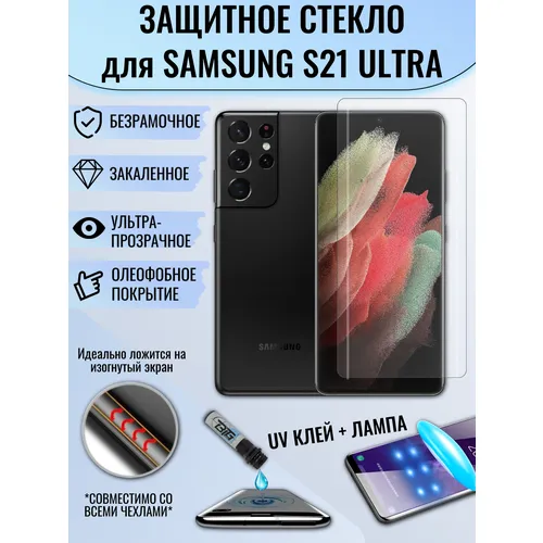 Защитное стекло для Samsung S21 Ultra изогнутое с УФ клеем и лампой