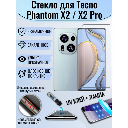 Защитное стекло для Tecno Phantom X2 / X2 Pro с UV УФ клеем и лампой