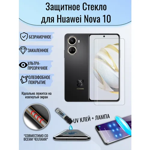 Защитное стекло Huawei Nova 10 с уф клеем и лампой Полноэкранное стекло Хуавей нова 10