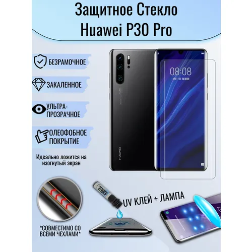 Защитное стекло Huawei P30 Pro с уф клеем и лампой олеофобное броне покрытие изогнутое полный UV клей