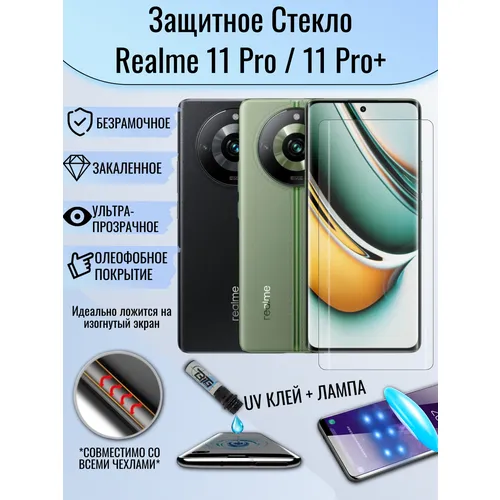 Защитное стекло Realme 11 Pro / 11 Pro Plus с уф клеем и лампой Полноэкранное стекло