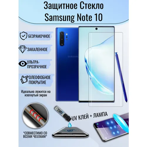 Защитное стекло Samsung Galaxy Note 10 с уф клеем и лампой изогнутое стекло олеофобное броне покрытие полный UV клей