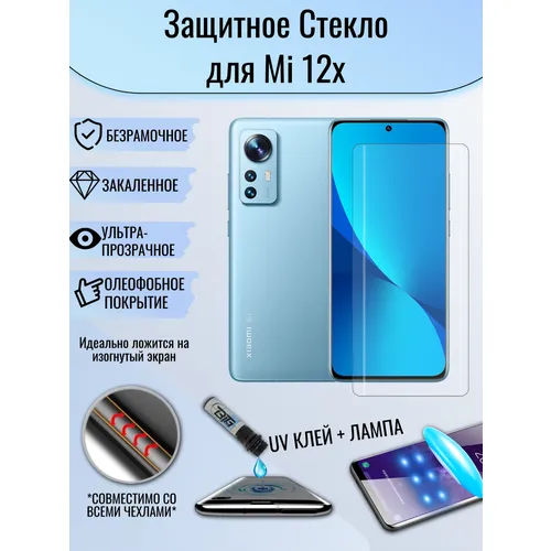 Защитное стекло Xiaomi 12x с уф клеем и лампой Mi 12x Полноэкранное стекло