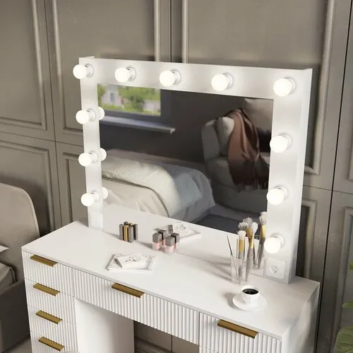 Туалетный столик GRIMSTOL 2БЕ60-БШ, гримёрное зеркало с лампочками, LED-подсветка для макияжа, для спальни, белый гладкий