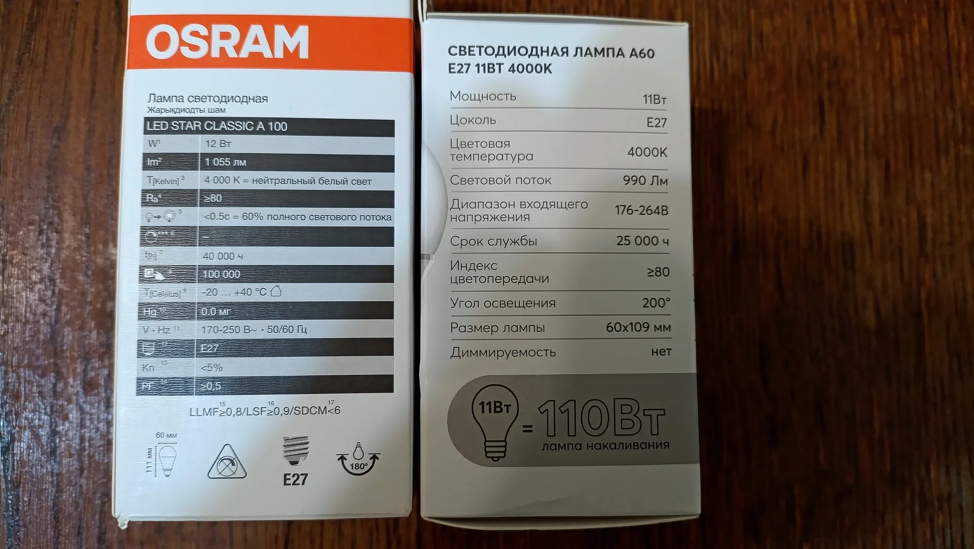 Всем здравствуйте . Перед нами лампы Osram 12 W и LedsPower 11 W . Сравним ?