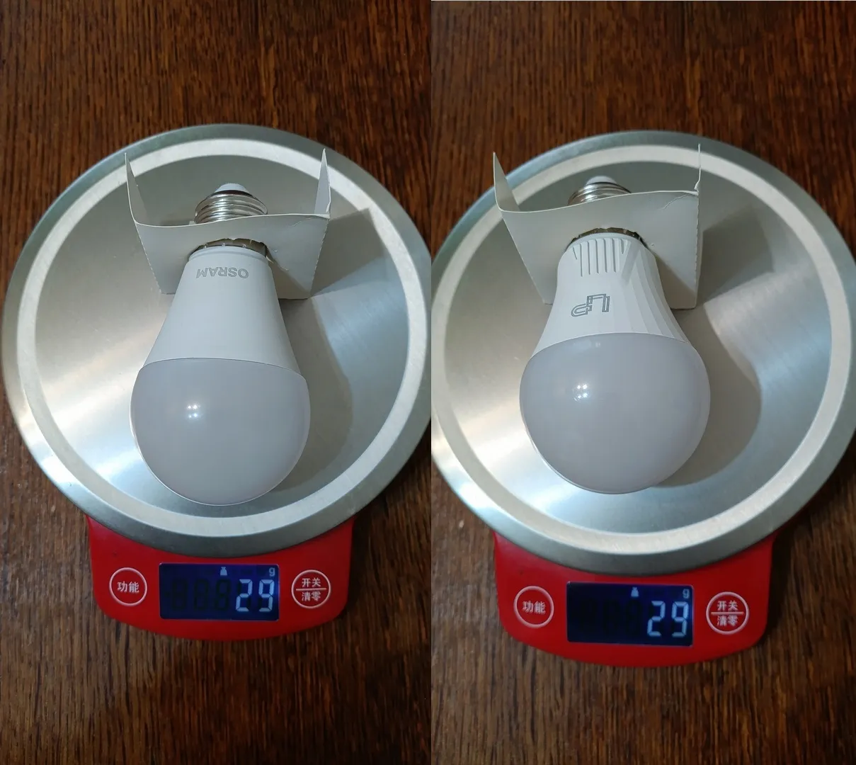 По традиции сначала на весы . Как видим лампы из одной весовой категории .