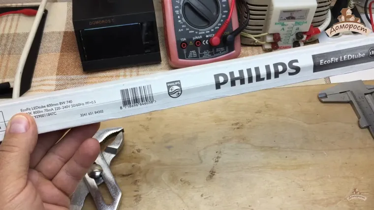 Люминесцентную или светодиодную лампу оставить в своем светильнике для потолка Армстронг, естественно, каждый выбирает сам. Трубка 600мм от филипс с мощностью 8W, из обзора, далеко, на мой взгляд, оказалась не тем образцом, который мог бы показать преимущества светодиодной техники.(В части для ценителей технических подробностей эта лампа от филипс и вовсе просто ошарашила меня одним из своих технических решений ...) Но говорить о экономии в вопросе потреблении электроэнергии надо, все таки, честно измерив реальную потребляемую мощность той самой люминесцентной лампы о которой идет разговор выше. После измерений/сравнения реальной мощности этих двух ламп и говорить будет уже не о чем. Кроме того лично я, например, никак не готов забыть о том, что сама по себе люминесцентная лампа-трубка это некоторый "полуфабрикат" . Для того, чтобы её запустить надо иметь внутри арматуры светильника ЭПРА , стартер, или ЭМПРА. А это все и габариты и потребление и надежность. Про все эти неудобства, на мой взгляд, никак нельзя забывать. Не забывайте и о пульсациях светового потока. Какие они у люминесцентной лампы-трубки ? Не беда, что нет прибора для измерения. Просто проверьте камерой мобильного телефона и посмотрите что у светодиодной и что у люминесцентной. Никакого сравнения нет для варианта установки светодиодной лампы-трубки и люминесцентной лампы-трубки в помещениях с низкой температурой. При пониженной температуре люминесцентной лампы-трубки не только крайне медленно разгораются но и никогда не выдают тот световой поток на который способны при комнатной температуре. При хорошем минусе люминесцентная лампа-трубка вполне способна и вовсе не включиться. Разговор про люминофор и его количество, возможно и имеет какой то смысл, но только для вопроса утилизации. Не более того. Но и в этом вопросе, то количество люминофора, которое есть на поверхности стекла в люминесцентной лампе-трубке и то, которое есть на корпусах светодиодов в светодиодной лампе, даже и сравнивать никак нельзя. Люминесцентная лампа-трубка это все таки совсем совсем вчера. Я продолжаю считать именно так. Сегодня и завтра это светодиодный свет. В том числе и сегодня и завтра потребности в лампах трубках для потолков и светильников Армстронг тоже, на мой взгляд, имеет смысл удовлетворять только меняя люминесцентные лампы на светодиодные ( а если новое строительство то просто нужна светодиодная панель для потолка армстронг). Основной вопрос сегодня в том как выбрать и купить действительно хорошую светодиодную лампу-трубку ( или светодиодную панель).
