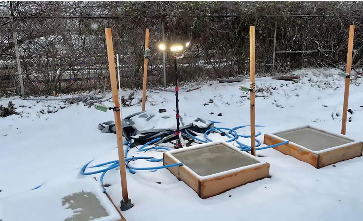 В процессе исследований специалисты протестировали три бетонные плиты, две из которых были с парафином, а третья - без него. С декабря 2021 года плиты лежали под открытым небом. За 2 года плиты прошли 32 цикла оледенения и оттаивания в различных погодных условиях. Это был снег, дождь, град и пр. За этот период также было 5 больших снегопадов. Мониторинг плит осуществлялся при помощи камер и тепловых датчиков. Плиты с парафином поддерживали на поверхности температуру 5,6 до 12,8 °C в течение 10 часов с момента начала заморозков. Выделенное тепло смогло растопить слой снега толщиной примерно 5 см.