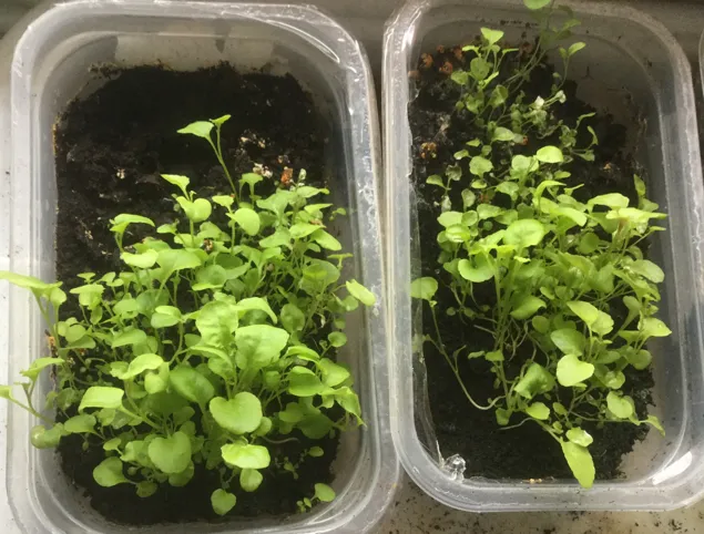 Я приготовила контейнеры пластиковые, в них холодец в магазине продавался, очень удобные для посадки рассады. В них сделала проколы для отвода воды. Наполнила землей, положила снег и дальше распределила семена. Дальше накрываем крышками и ставим в теплое и светлое место. Кондесат на крышках контейнеров надо снимать.