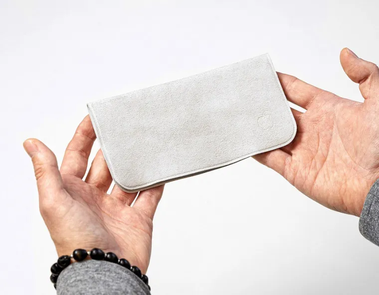 Эта новинка, которая уже поступила в магазины России, всего лишь кусок материала. Однако спрос на нее настолько велик, что те, кто сейчас захочет ее заказать, получат только в начале 2022 года. В упаковочной коробке есть короткая памятка, в которой говорится о безопасности материала для дисплеев, смартфонов, планшетов, ноутбуков и других продуктов Apple, включая профессиональный монитор Pro Display XDR. Это значит, что можно протирать деликатные поверхности и дорогие дисплеи. Некторые старые устройства не вошли в список. Если у пользователя дисплей с наноструктурой, то можно применить 70% раствор изопропилового спирта. Интересно, что производитель не положил в коробку традиционную яблочную наклейку.