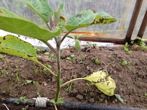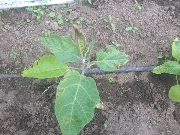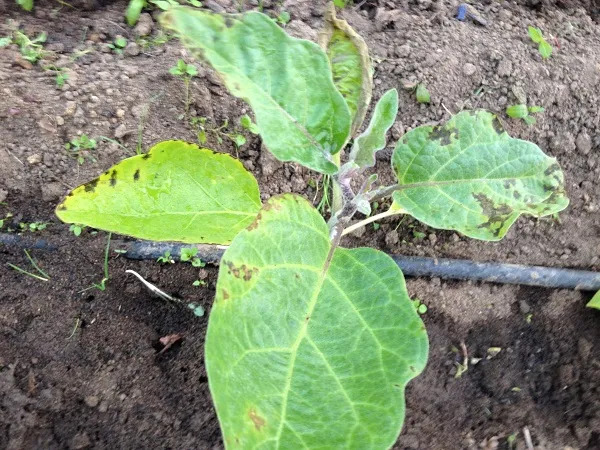 Вот мой разнесчастный баклажан. Мне не удалось справиться с черными пятнами, видимо один гуапсин не справляется, но зато новые листья выросли большими и зелеными.