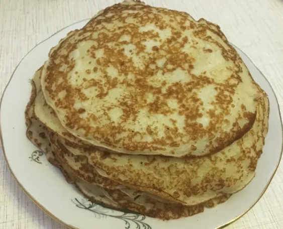 А вот простые блины на кефире. 3 стакана муки, 3 яйца, 3 ложки подсолнечного масла, 3 ст. ложки сахара, соль по вкусу, 1 л кефира. Смешиваем. ИВыпекаем. Может не так красиво звучит, но сытно и вкусно!