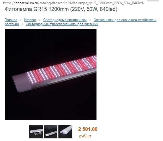 Из тех, которые подешевле Фитолампа GR15 1200mm (220V, 50W, 840led) 2501руб