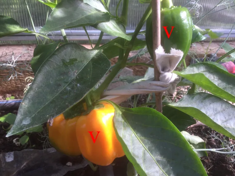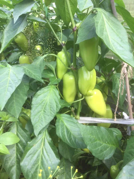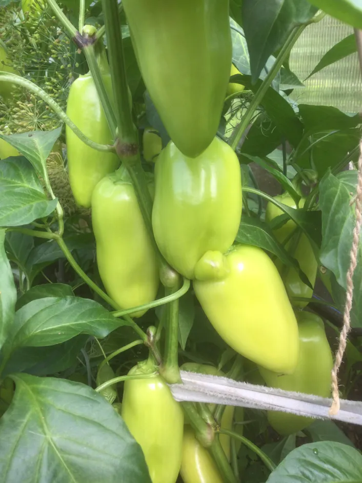 Вырастить сладкий перец на участке оказалось не сложно. Видимо наша земля подходит для этого растения, каждый год перец обязательно вырастает неплохой. Этот год выдался особенно удачным для перцев, да и для нас, потому что теплица качественная, перегной и подкормки. В начале своего огородничества я и не подозревала, что перец должен стать в конце концов цветным. Мы его ели зеленым и ни на минуту не сомневались, сто он не зрелый. Вкус как у магазинного. Но вот пришло прозрение - перец должен вызреть, поменять окраску и вот тогда он становится уже готовым продуктом. В этом году это очень хорошо видно на одном кусте. За день темно-зеленая окраска перешла в рыже-желтую.