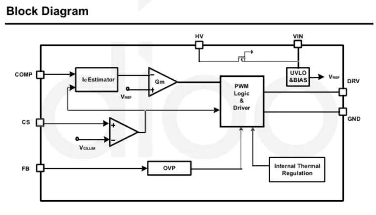 Хитрая микросхема. По сути на ней и построен весь драйвер. Ведь микросхема производит, не только активную коррекцию КМ, но и осуществляет стабилизацию тока в нагрузке...