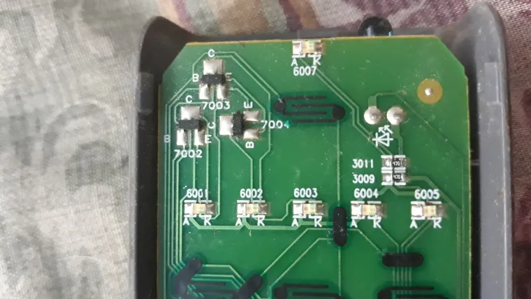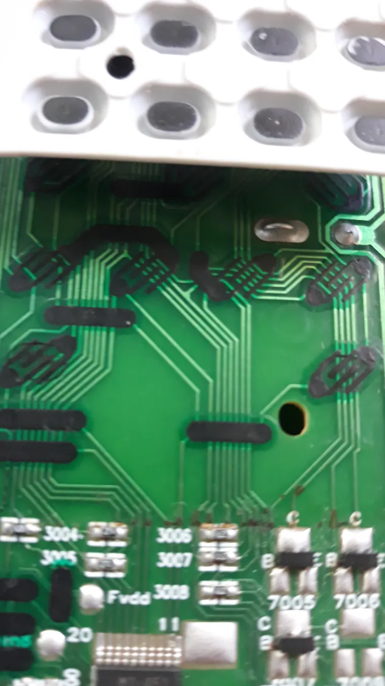 Резина тех кнопок, которые "задубели" как будто бы отпечаталась на печатной плате, при этом легко убралась ластиком......