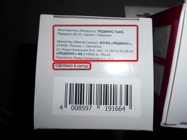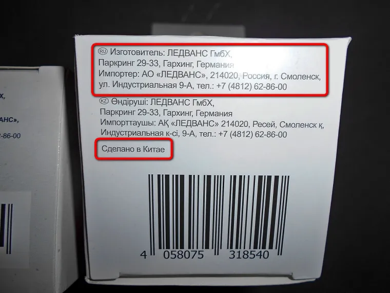 это Osram изготовитель Ledvance, импортер Россия (сделано в Китае)