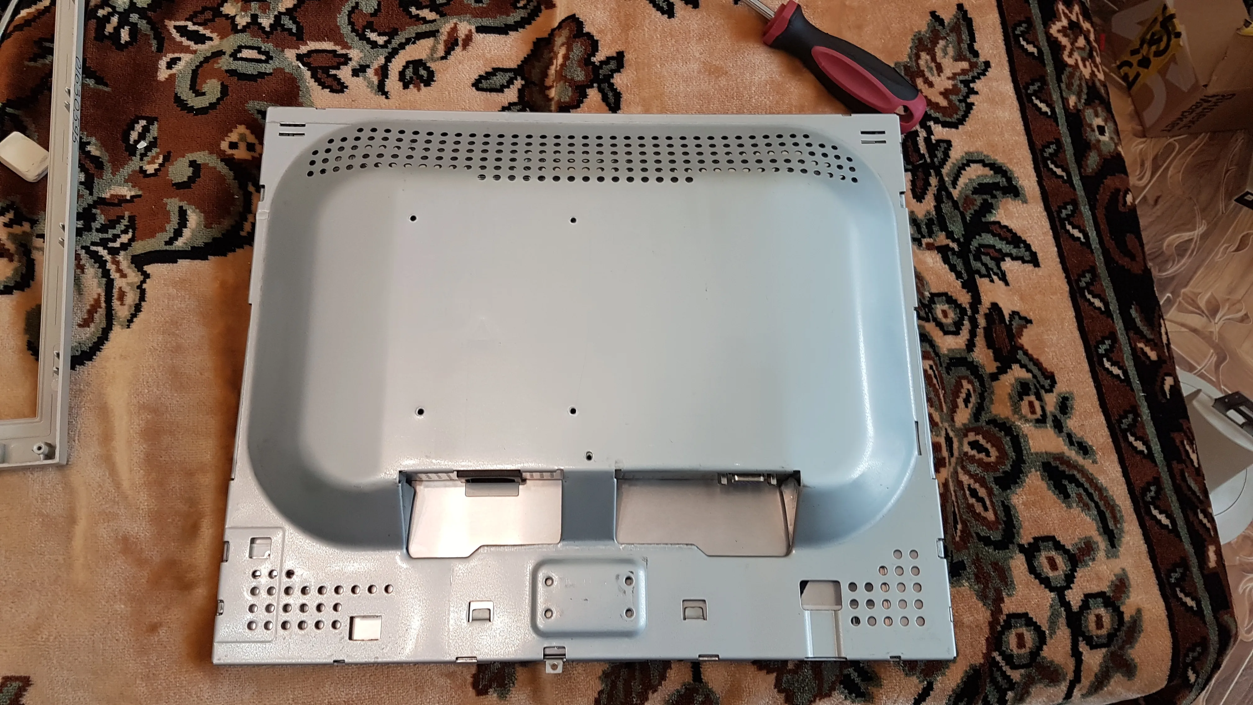 Отщелкиваю заднюю крышку, перед этим открутив подставку.