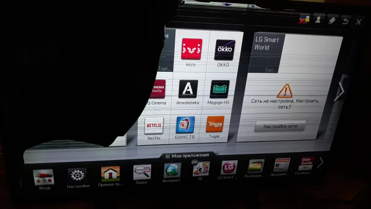 Безрамочный дизайн, ~~тонкий и красивый телевизор~~ ... мне такие не нравится, рамки рулят! Ну ладно, а что с ним у нас не так, почему он оказался у меня, включаем и: