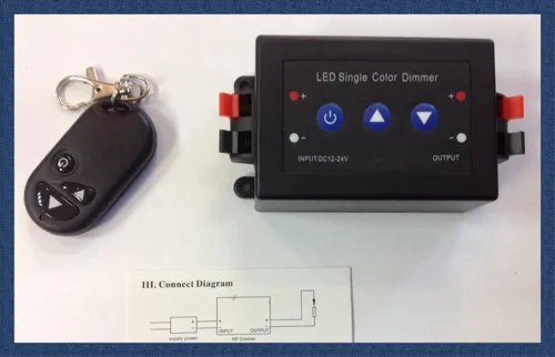 Если выбирать из диммеров с радиопультом тогда обязательно , чтобы пульт работал только с одним своим блоком и не влиял на все другие . Например такой ( кстати на фото ниже есть и простенькая схема подключения диммера )
