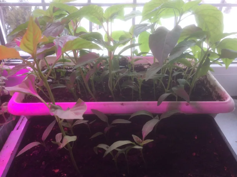 Перцы набирают силу и тоже скоро потребуют пересадки. Кстати очень хорошо видно, что не зря был проведен подсев. Первая партия взошла плохо.