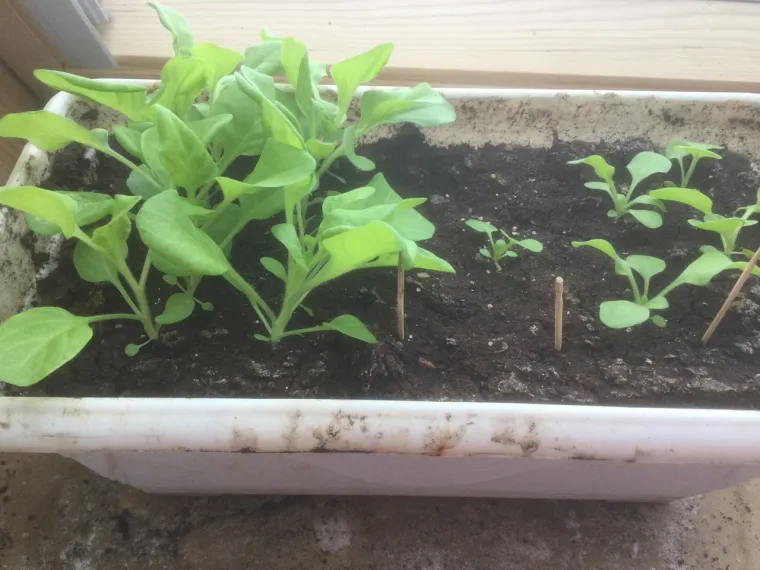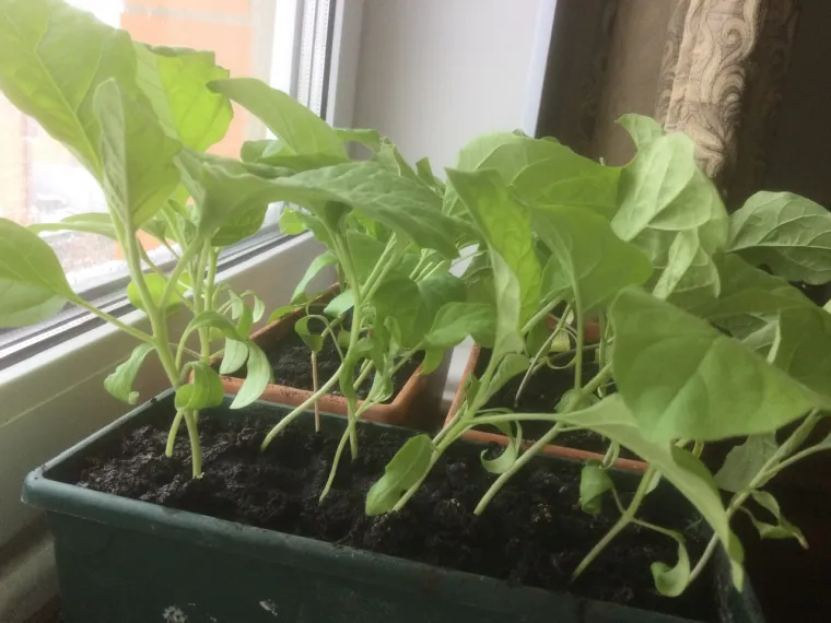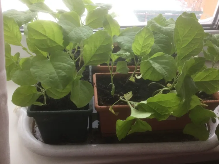 Баклажаны стоят на прохладном подоконнике, но их рост уже остановить трудно.