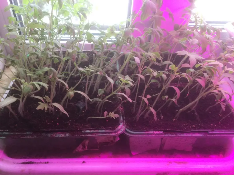 Помидоры всю неделю провели под лампой и это хорошо отразилось на их внешнем виде. Очень скоро придется рассаживать их по отдельным емкостям.