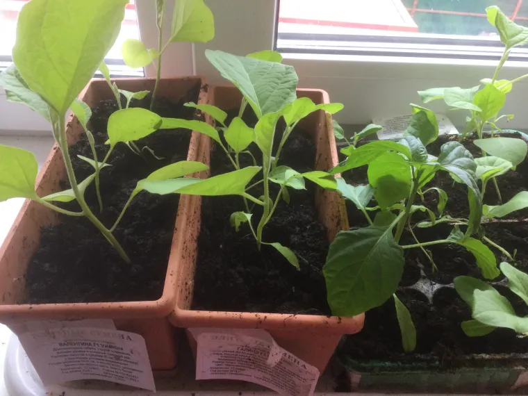 Баклажаны не стала пикировать, они вроде пока сидят просторно, да и место на окошке заканчивается, поэтому просто подсыпала земли в ящики.