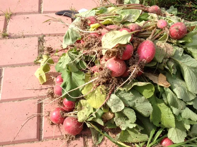 21 сентября. Кончился мой отпуск и я вернулась к повседневным заботам. Дача совсем вылетела из головы, но вот я приехала, посмотрела на свои осиротелые грядки, вроде все в порядке. Надо проводить ревизию. И вот тут-то я была полностью вознаграждена. Редис. который я сажала в августе вырос очень приличный (фото прилагается). огурцов я собрала ведерко - они конечно переросли, но представляете! в сентябре! свои огурцы с грядки! У меня это в первый раз. Причем в мое отсутствие никто ничего не поливал, не собирал, не подкармливал. Мой восторг вызвала грядка с перцем. У меня никогда такого чуда не было. Конечно очень много мелких плодов, но это потому, что их оказалось слишком много на одном кусте. Капуста вся потрескалась. Я к ней не проявляла интереса и не заметила, что она ранняя. за это и поплатилась. Ну и конечно помидоры. Я читала разные отзывы и рассказы про помидоры в кадках, но не очень-то верила. А теперь могу сказать - буду сажать помидоры только в отдельные емкости. Когда я увидела эти кусты, усеянные КРАСНЫМИ. созревшими плодами моему удивлению и восторгу не было предела. Ура! Летний сезон прошел не напрасно! Мне удалось удивить саму себя.