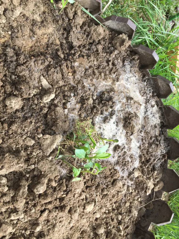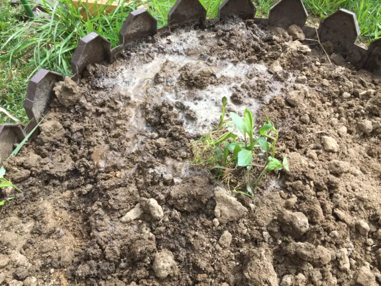 Всю землю, где растительность не нужна, а это въезд и участок между забором и дорогой опрыскала Раундапом.