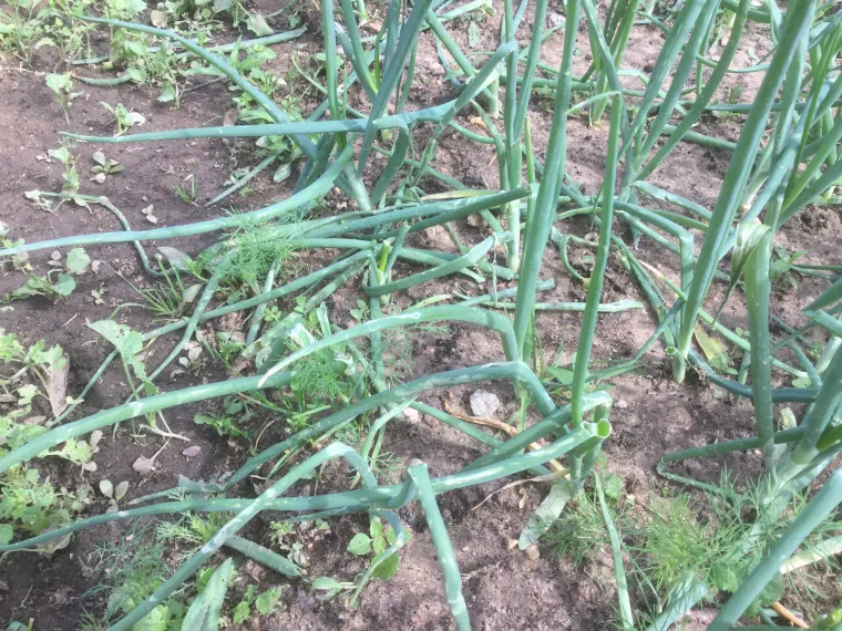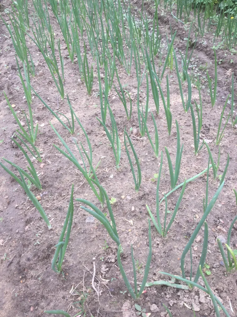 Пересадила лук порей и эксебишен. Когда уезжала выглядели они не очень хорошо. Одна надежда на осадки.