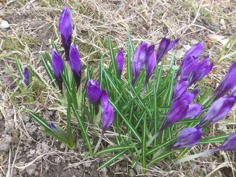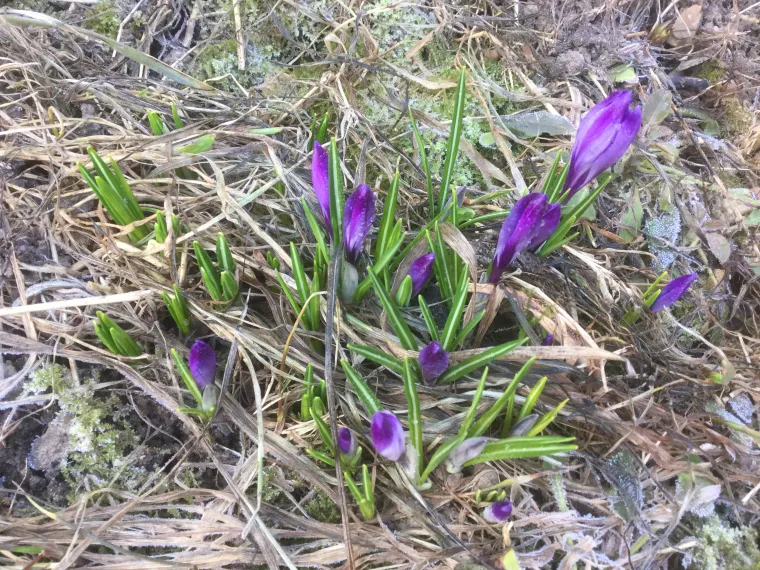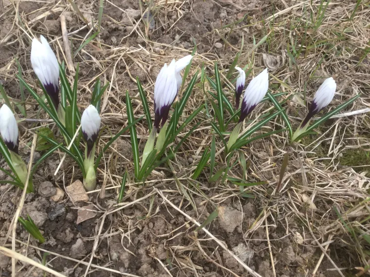 Великолепные крокусы, неприхотливые, но очень красивые. Несколько лет назад уже была попытка посадить покупные, но они цвели только один год, а потом пропали. Это цветы, которые растут в нашей деревне во всех дворах. Районизированые сорта.