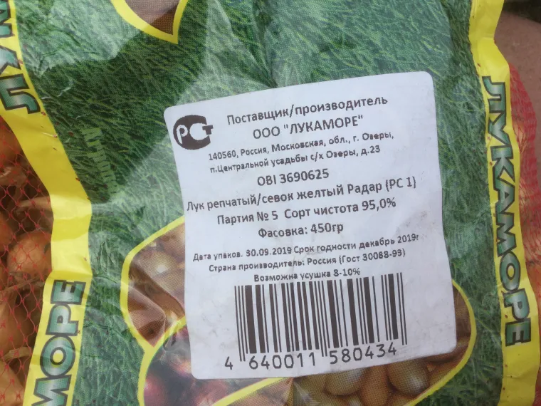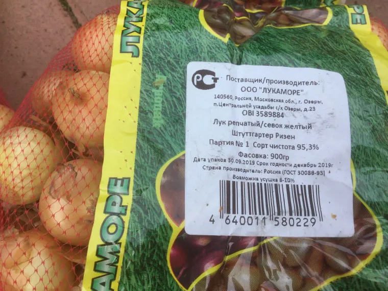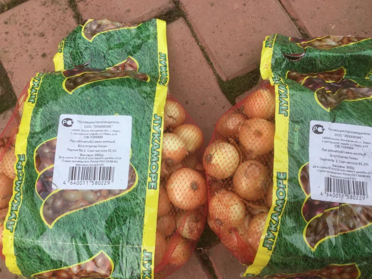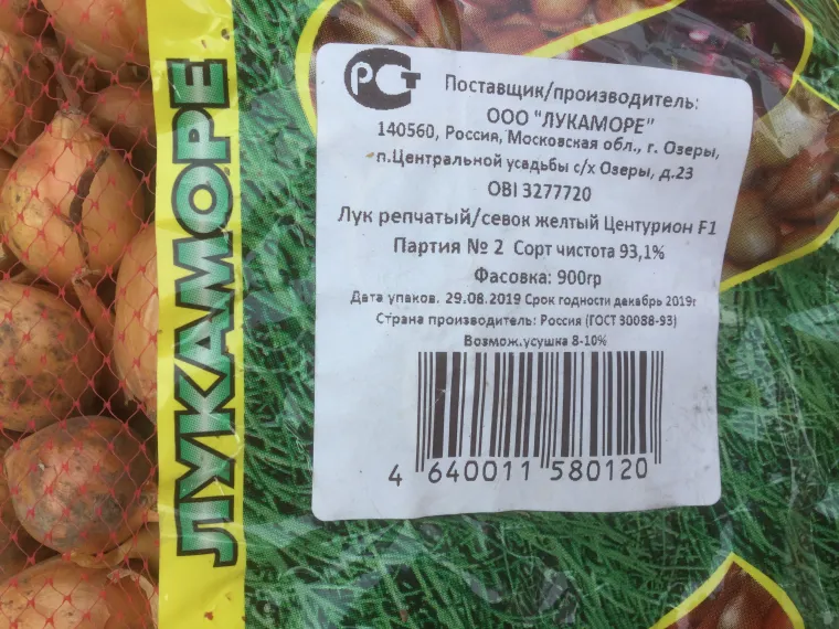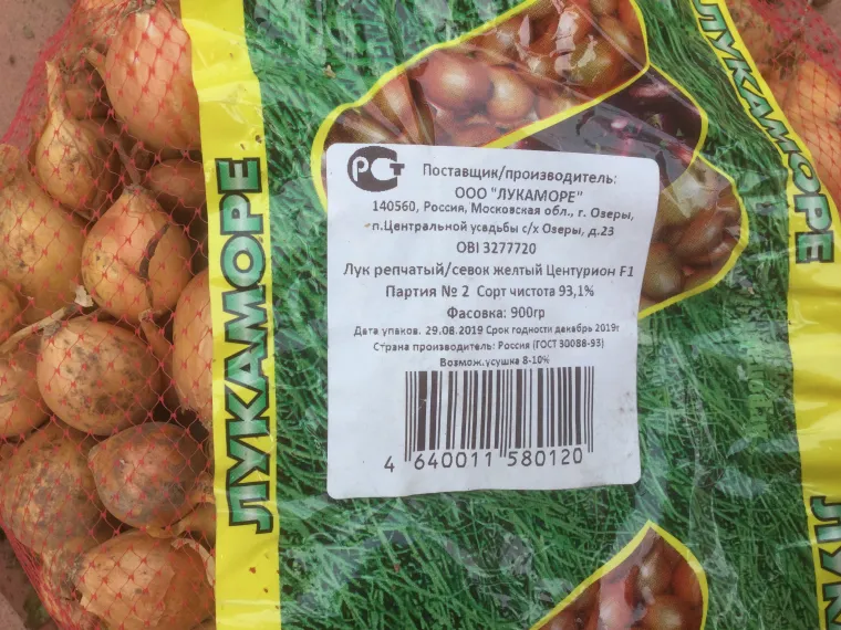 Последний сорт - Центурион. Тоже очень мелкий, пришлось выбирать из мешка луковки покрупнее.