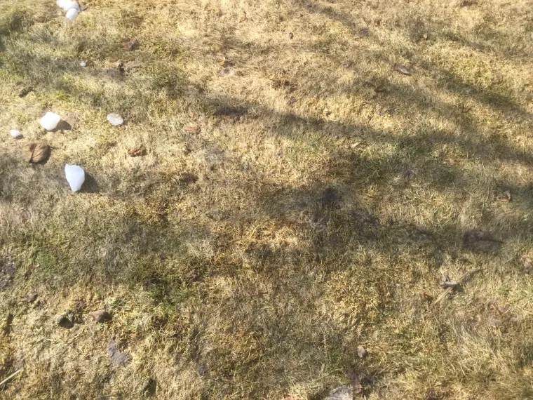 Газон из-под снега вышел в плачевном состоянии. Обязательно надо подкармливать.