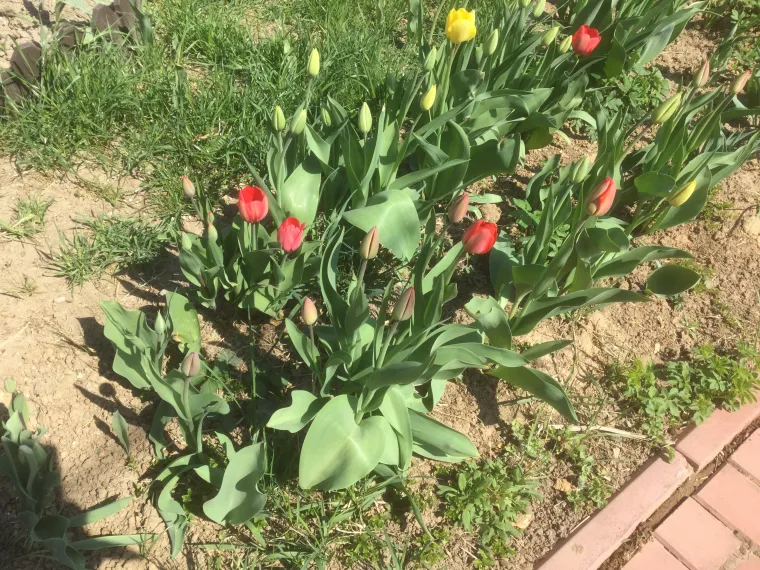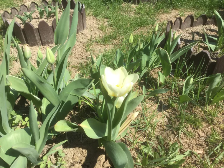 Начали распускаться тюльпаны. Осенью я их Фитоспорином-М поливала. Они выросли очень крепкими