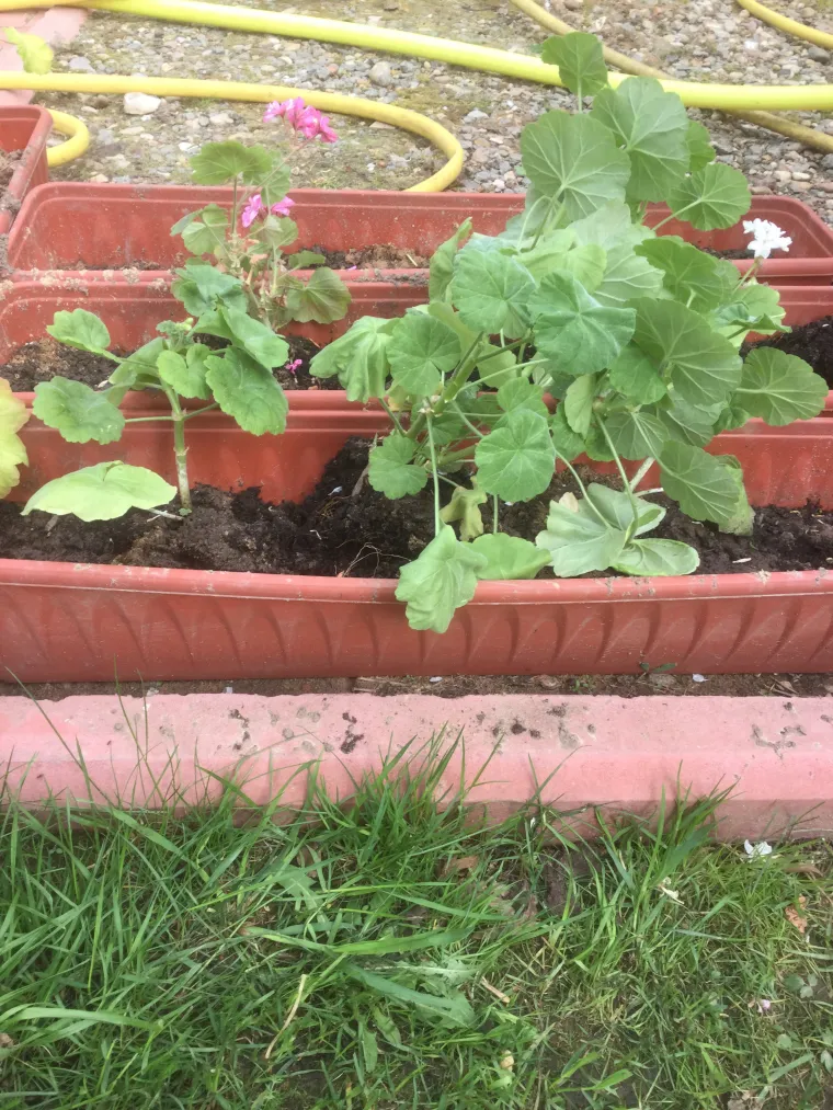 Высадила на улицу герань. Правда пока не очень презентабильно смотрится. Надо земли добавлять.