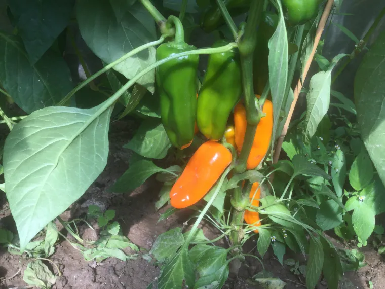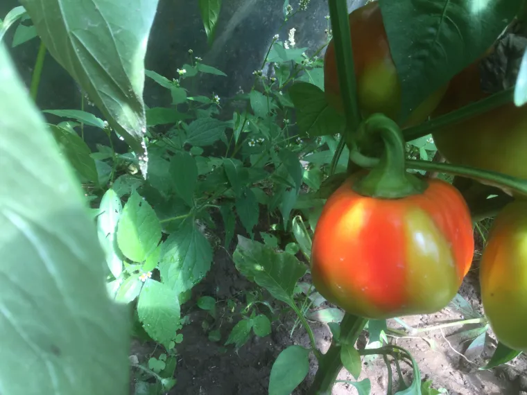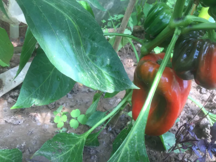 А вот перцы в этом сезоне срезала мало, они даже начали менять цвет, значит созревают. И вот цветные перцы уже имеют сладкий вкус.