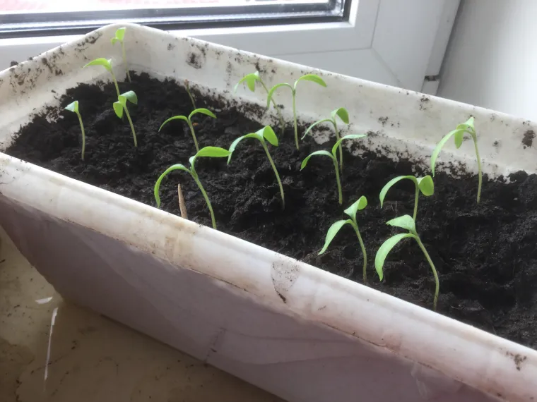 Очень хорошо взошел базилик. Первый раз в жизни базилик так быстро взошел и набирает рост.