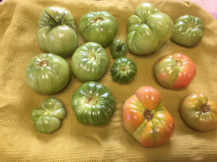 Я вычитала, что можно окунуть помидоры в горячую воду, держать их 2 минуты, потом охладить в холодной, вытереть и оставить дозревать. Не знаю что получится, надежд мало, но решила попробовать, уж очень не хочется терять урожай.