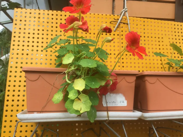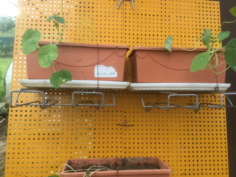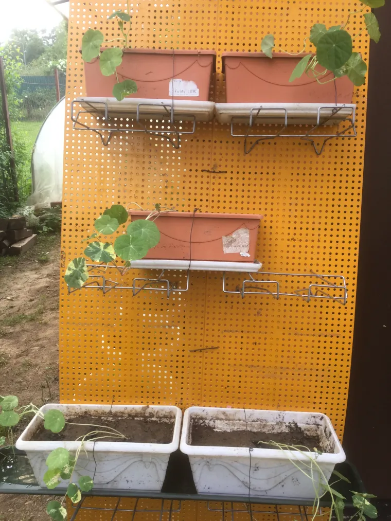 Реализовали свою старую задумку. Сделали вертикальную клумбу. Специально для этого вырастила настурцию.
