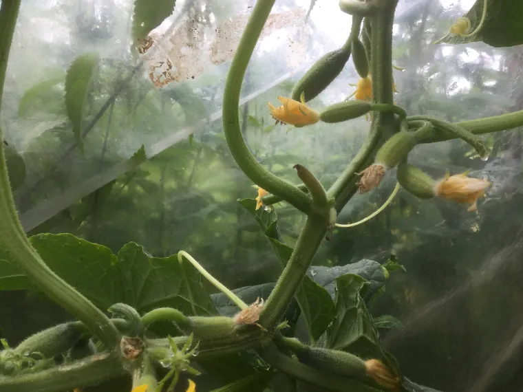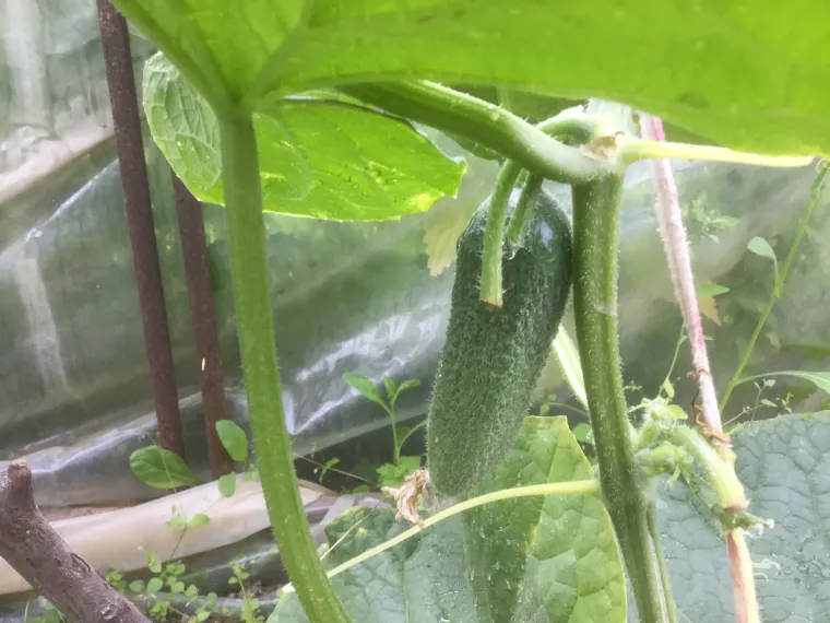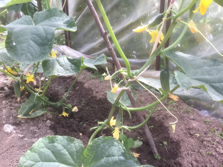 Надеюсь, что похолодание не остановит рост. Мы закрыли теплицу, оставили небольшую щель, чтобы воздух проходил. В выходные была жуткая жара. Часть новых завязей опала, не выдерживают такой температуры.