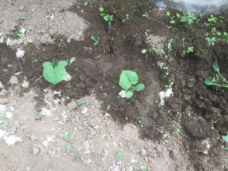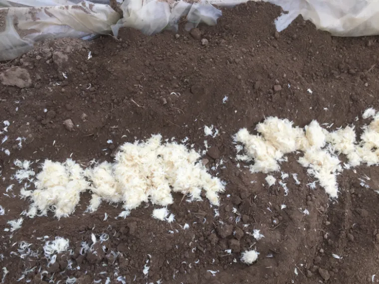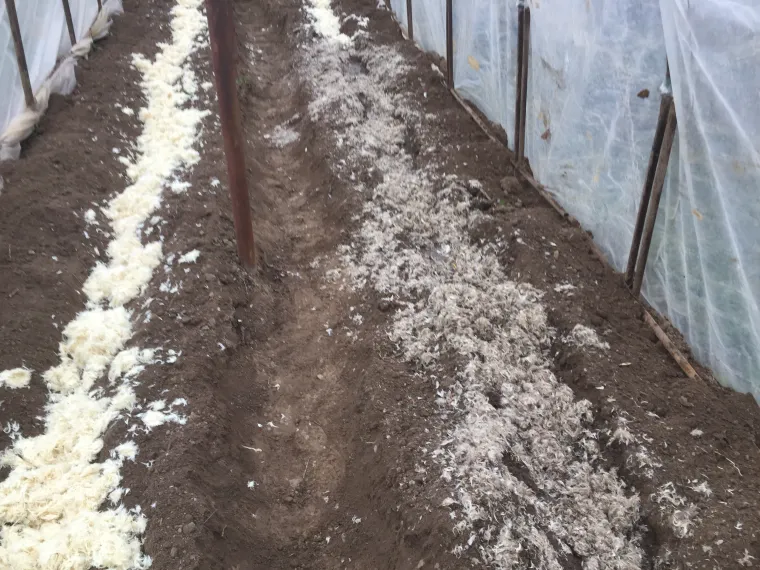 В теплице перья из подушек, все не очень чисто, но надеюсь для растений полезно.