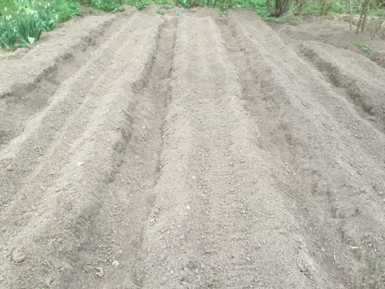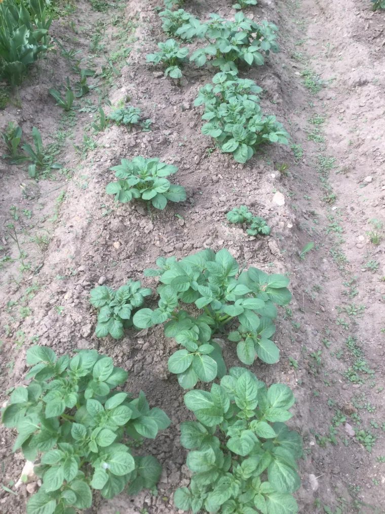Посадили картошку, причем в этом году сажали по-другому. Обычно все большие ростки отрывала перед посадкой, а в этом году все оставила, аккуратно разложила в лунках картофель, добавила золу, полила Фитоспорином-М, добавила немного Провотокса от проволочника, еще раз как следует полила каждую лунку и картошку закопали.