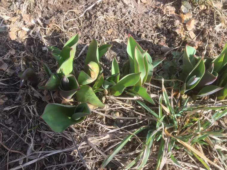 А тем временем весна берет свое и на припеке появились тюльпаны. Нет, конечно не цветы, а побеги.